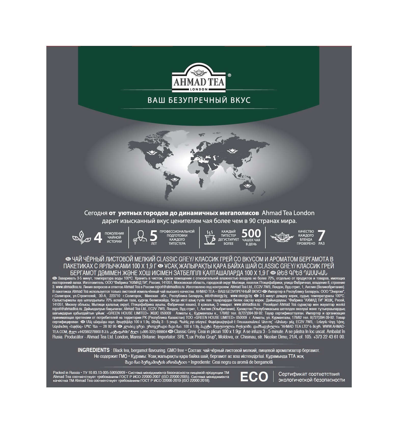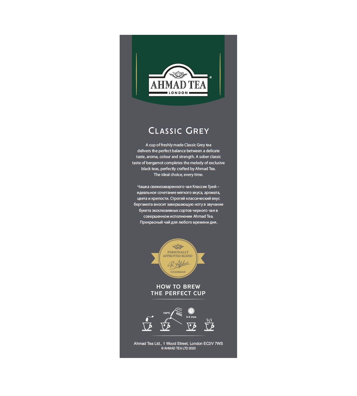 | Чашка свежезаваренного чая Классик Грей – идеальное сочетание мягкого вкуса, аромата, цвета и крепости. Строгий классический вкус бергамота вносит завершающую ноту в звучание букета эксклюзивных сортов черного чая в совершенном исполнении Ahmad Tea. Прекрасный чай для любого времени дня. |